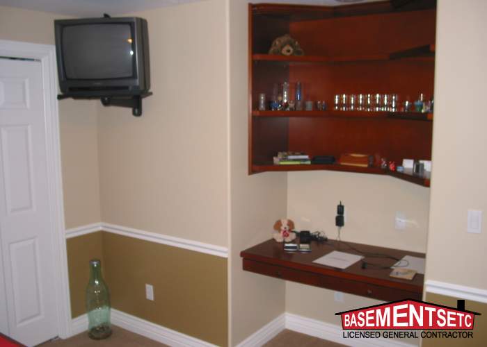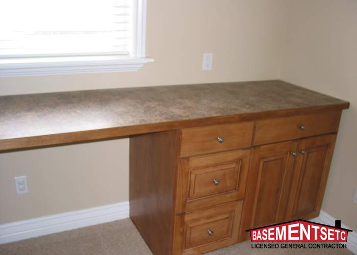Transform your remote work experience with custom basement offices and dens from Basements Etc., featuring functional layouts and smart storage solutions.